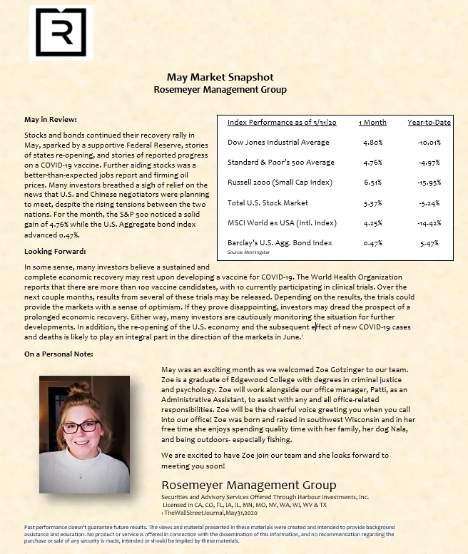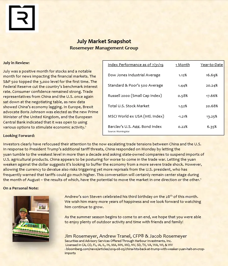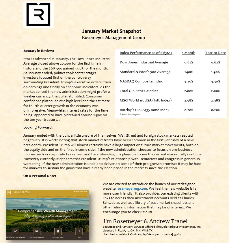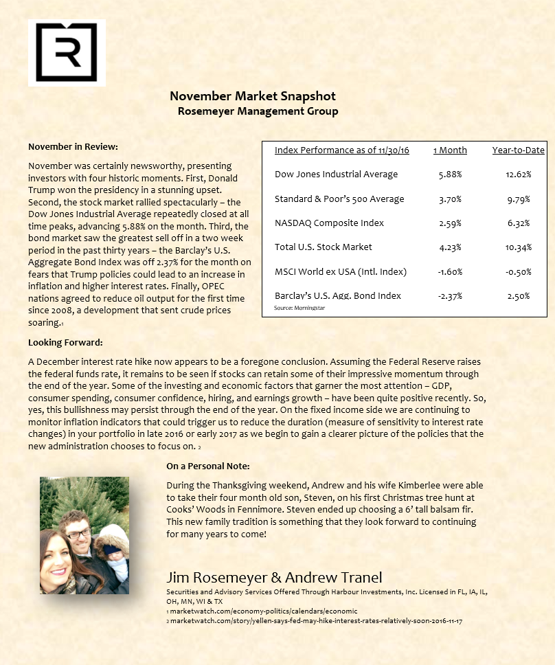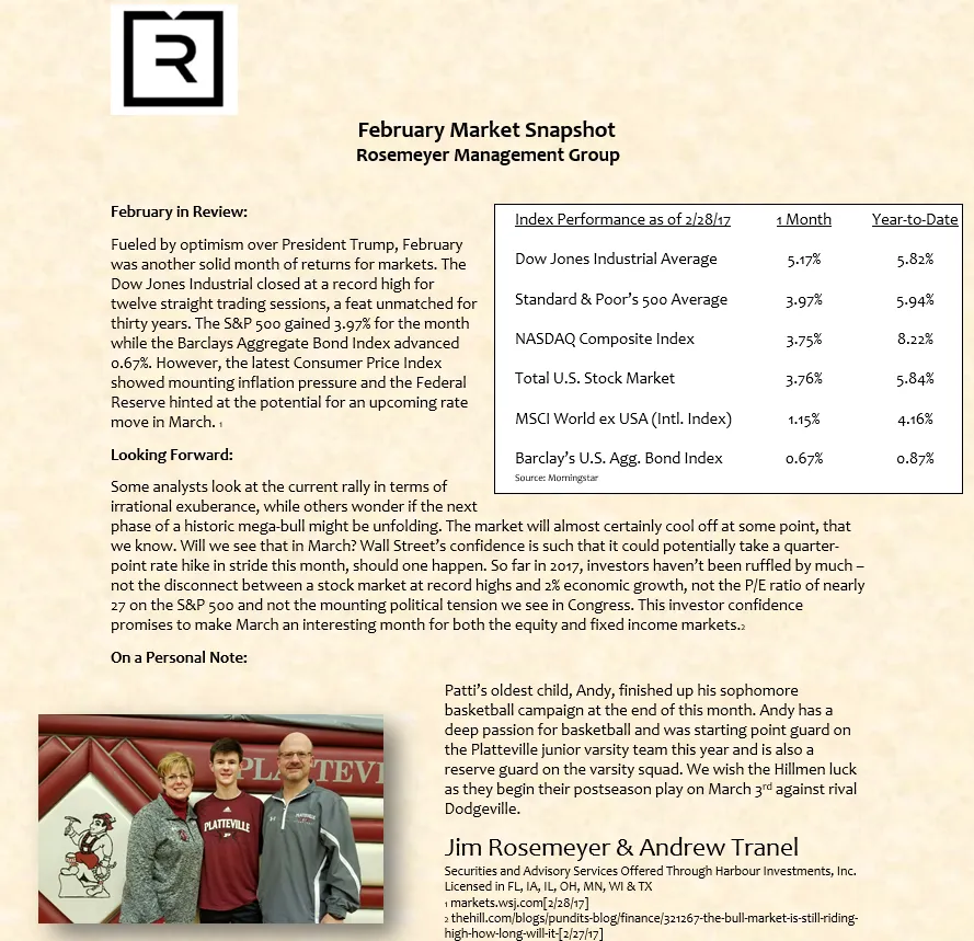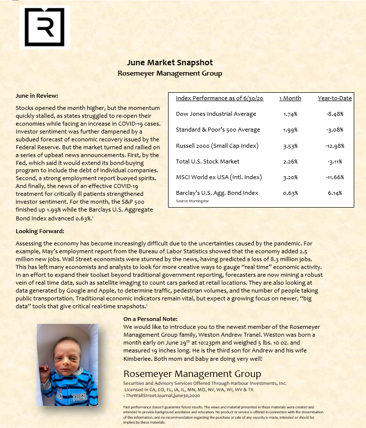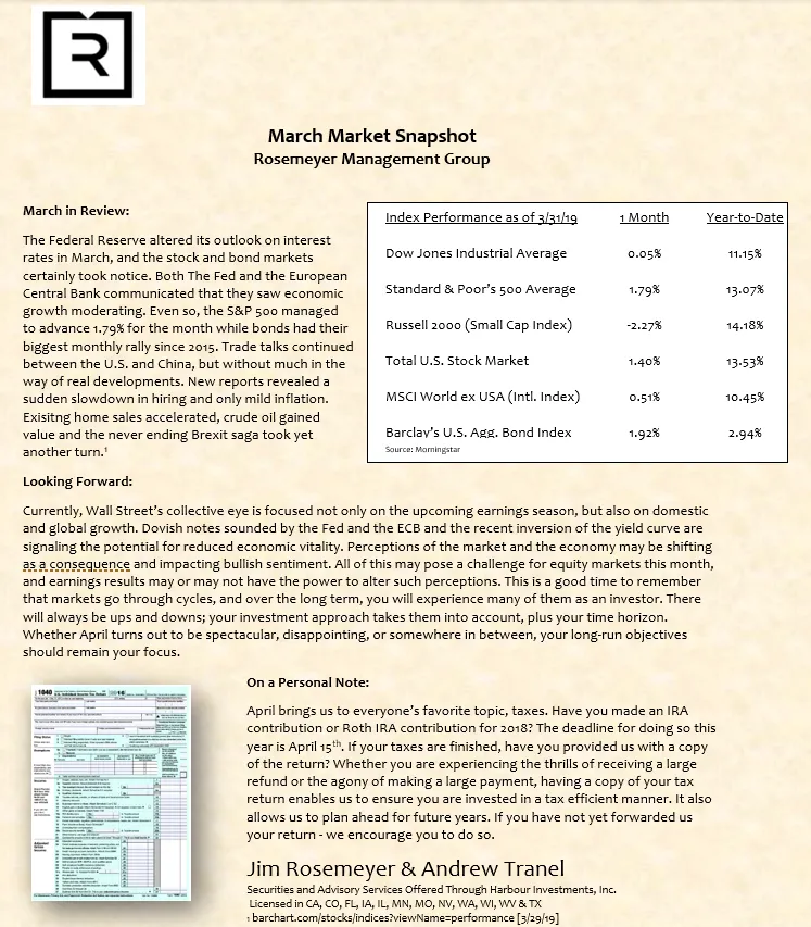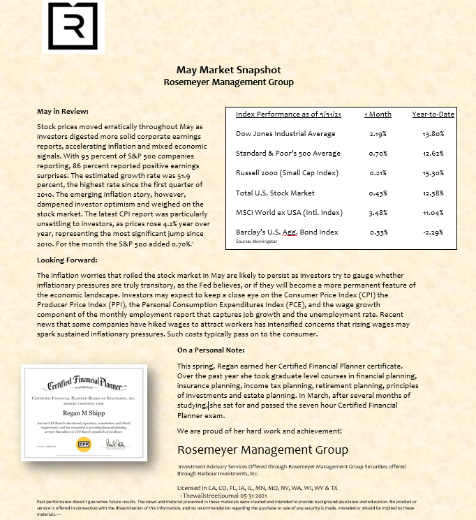 We prepare a monthly market commentary for all of our clients.