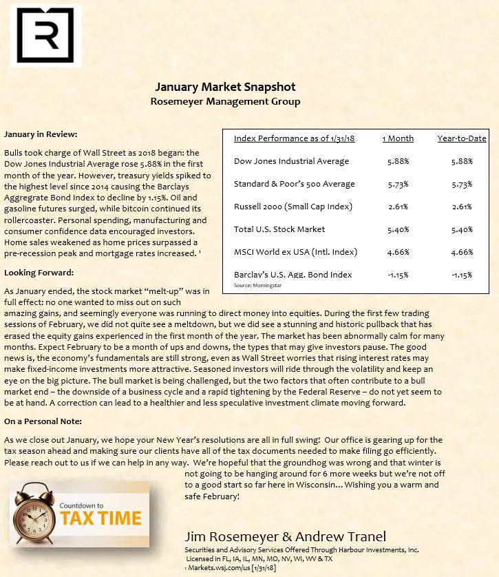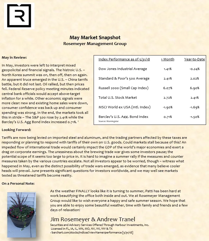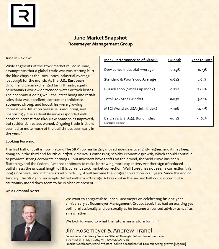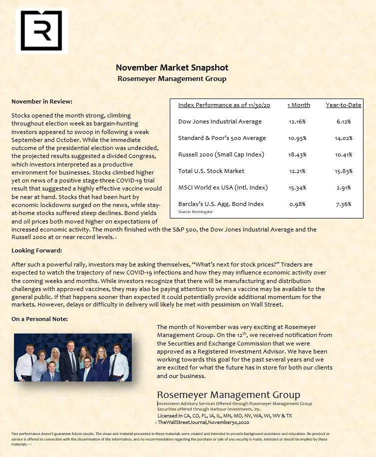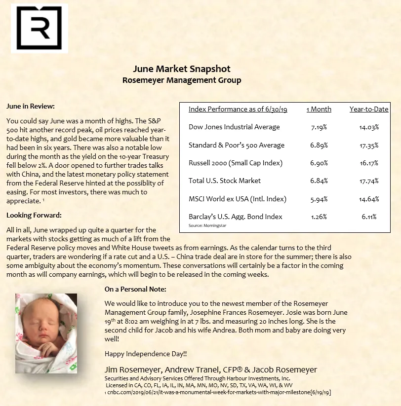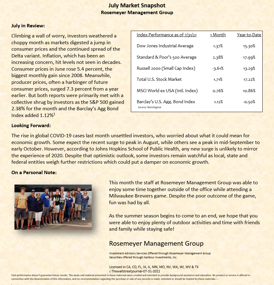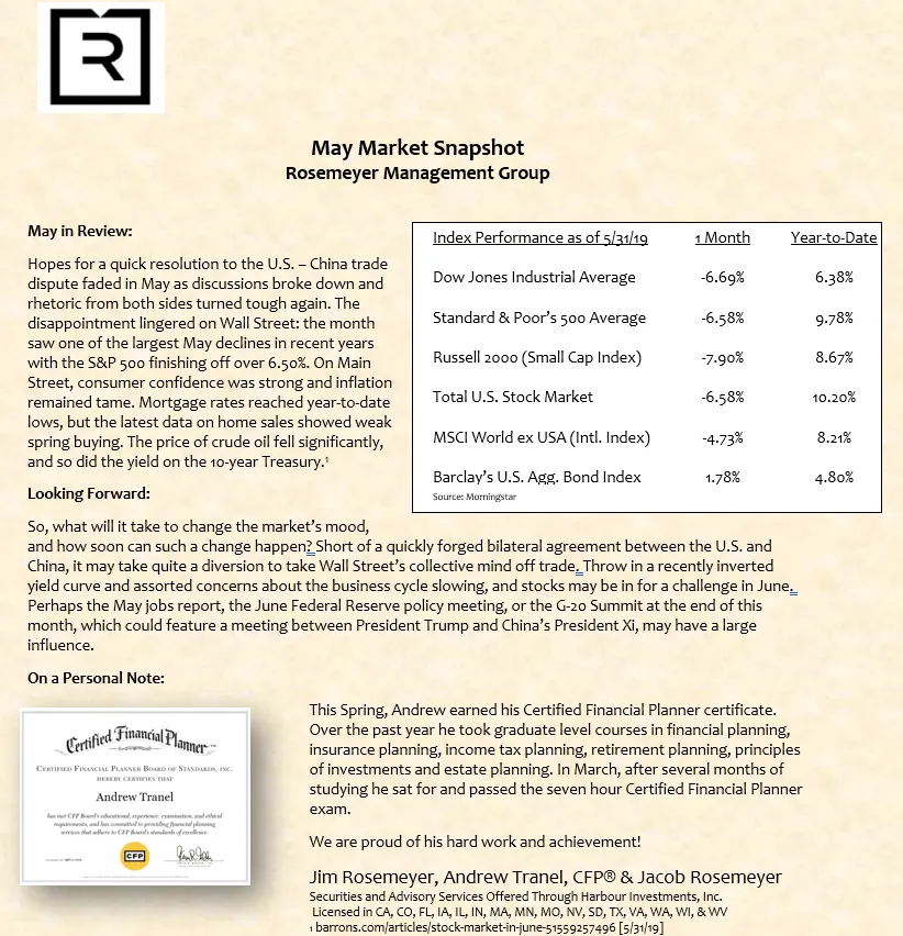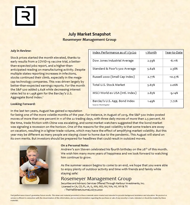 We prepare a monthly market commentary for all of our clients.