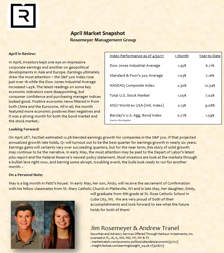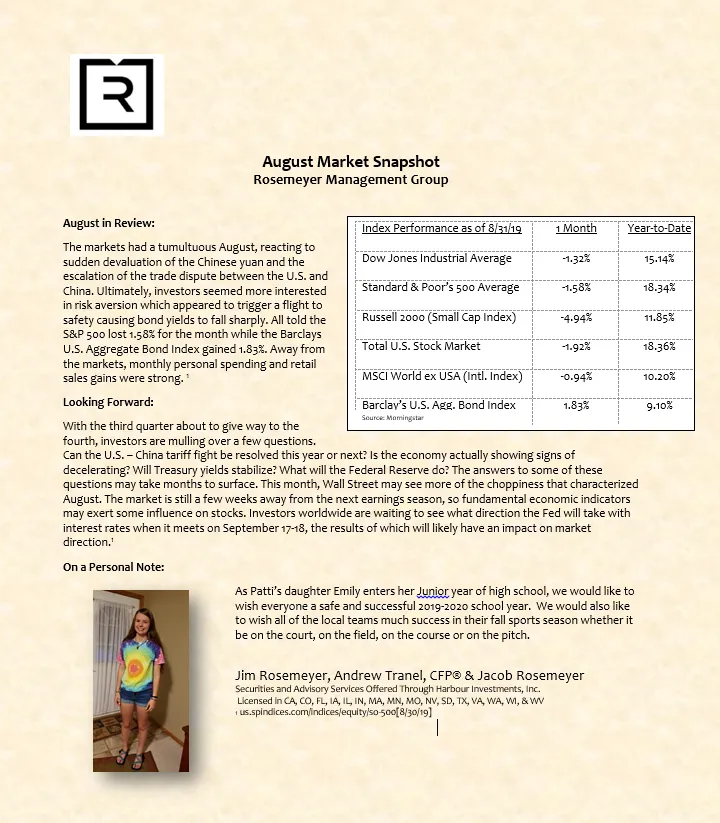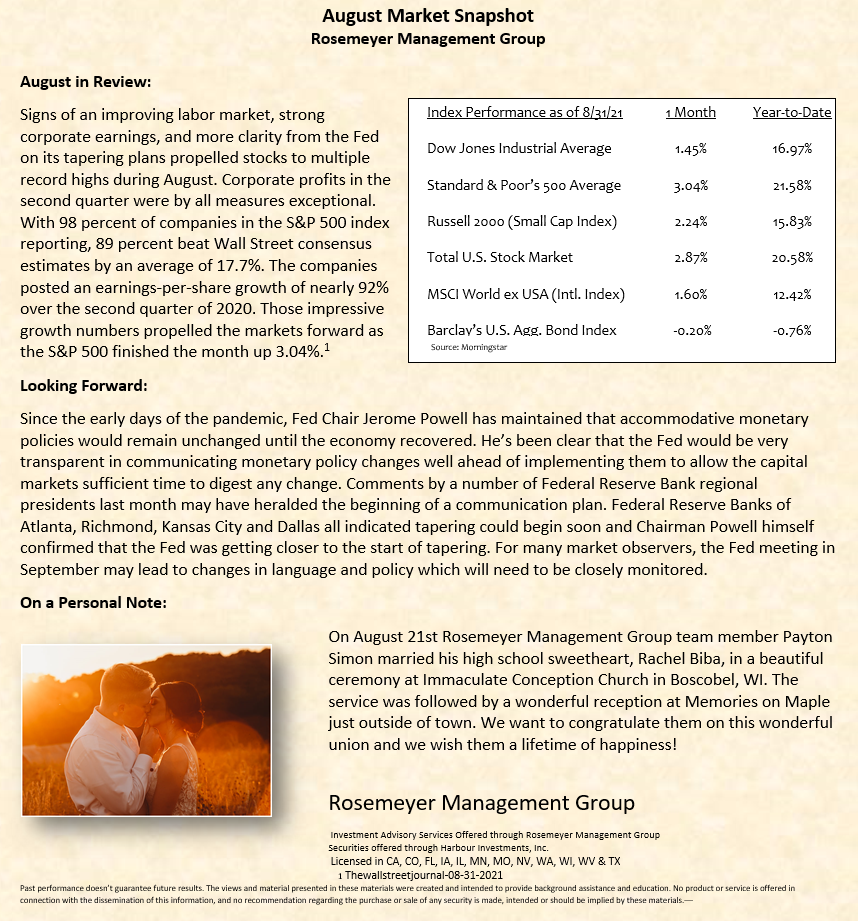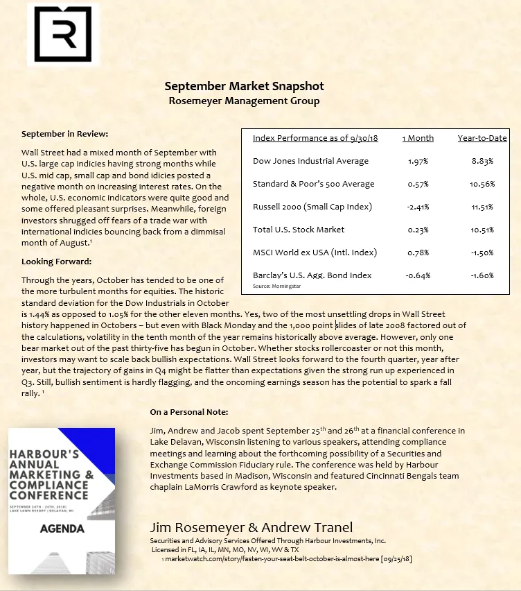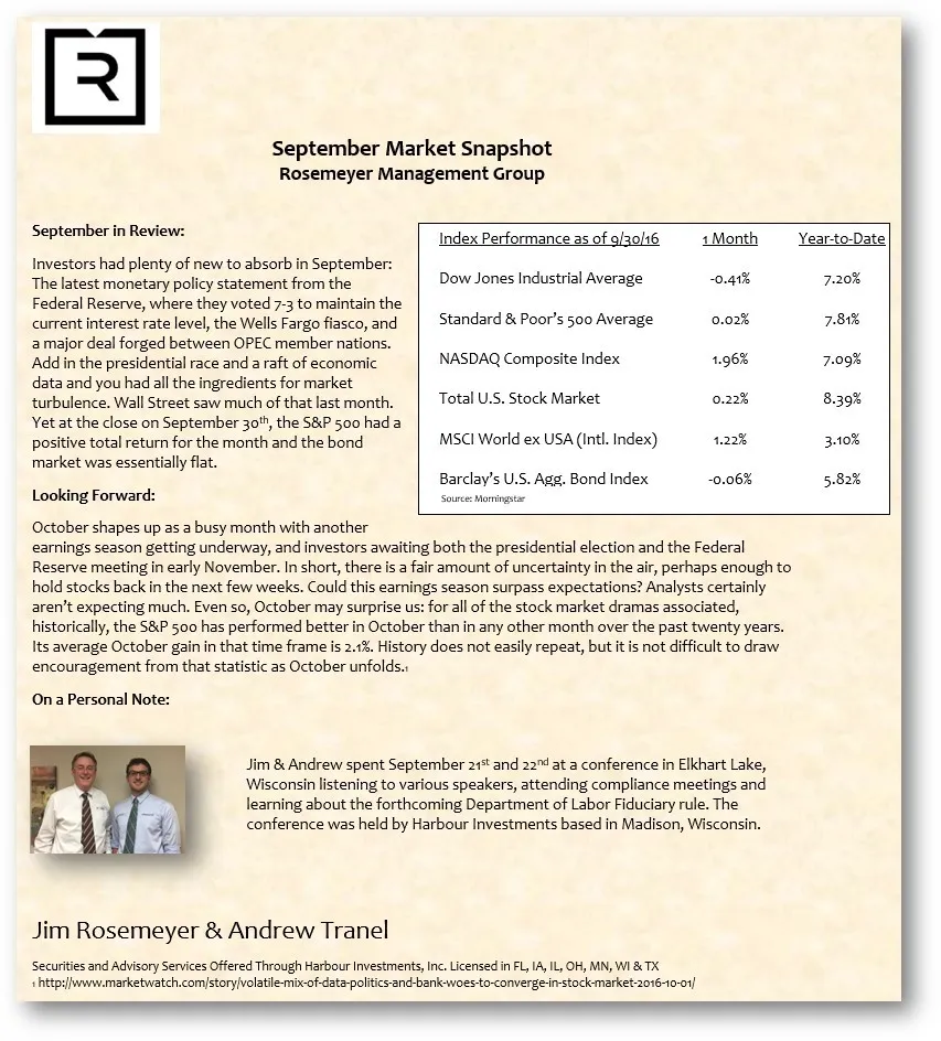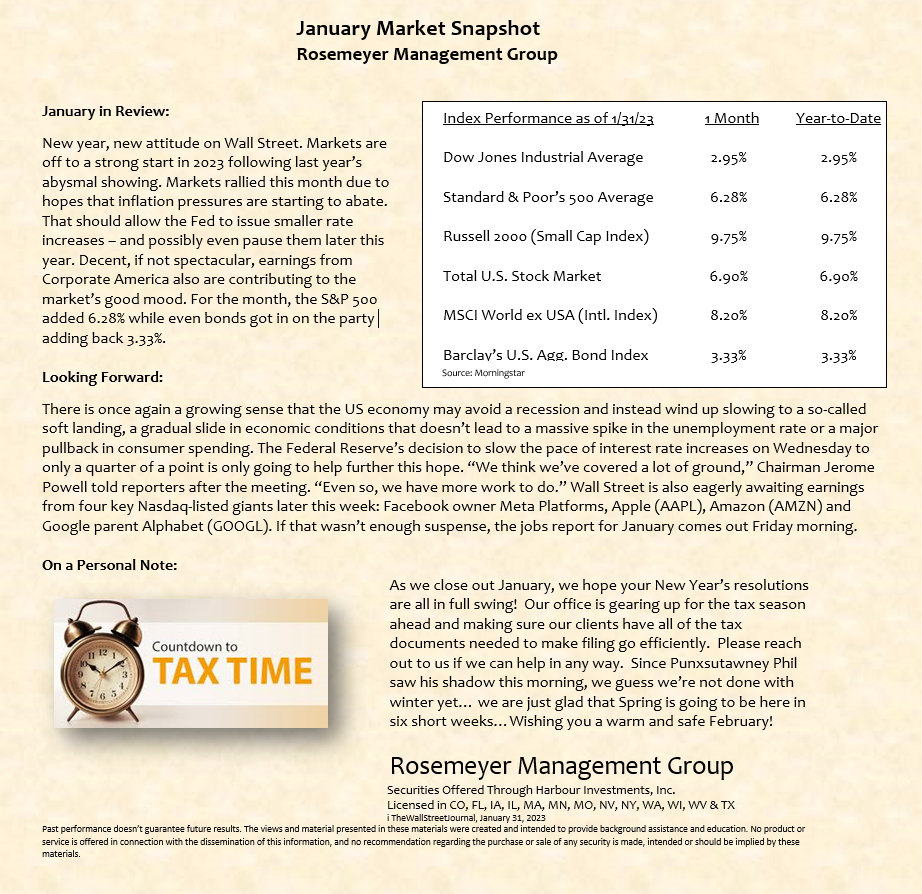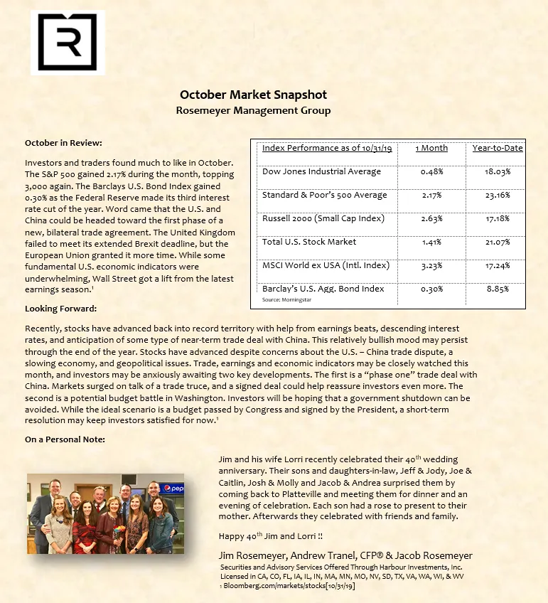 We prepare a monthly market commentary for all of our clients.
