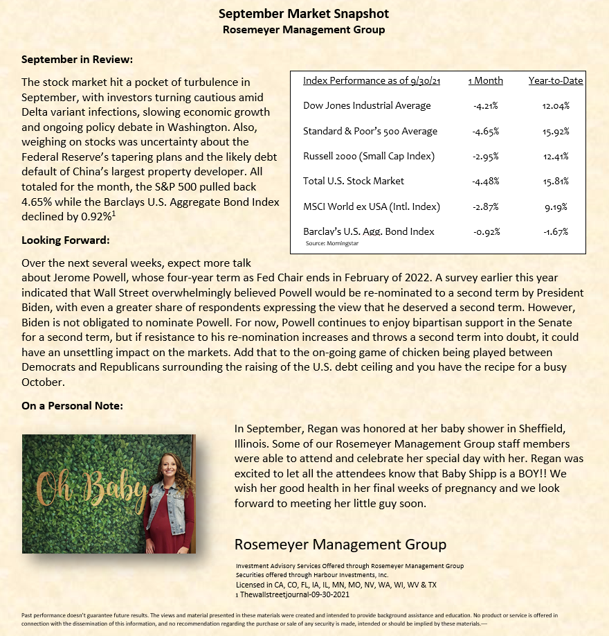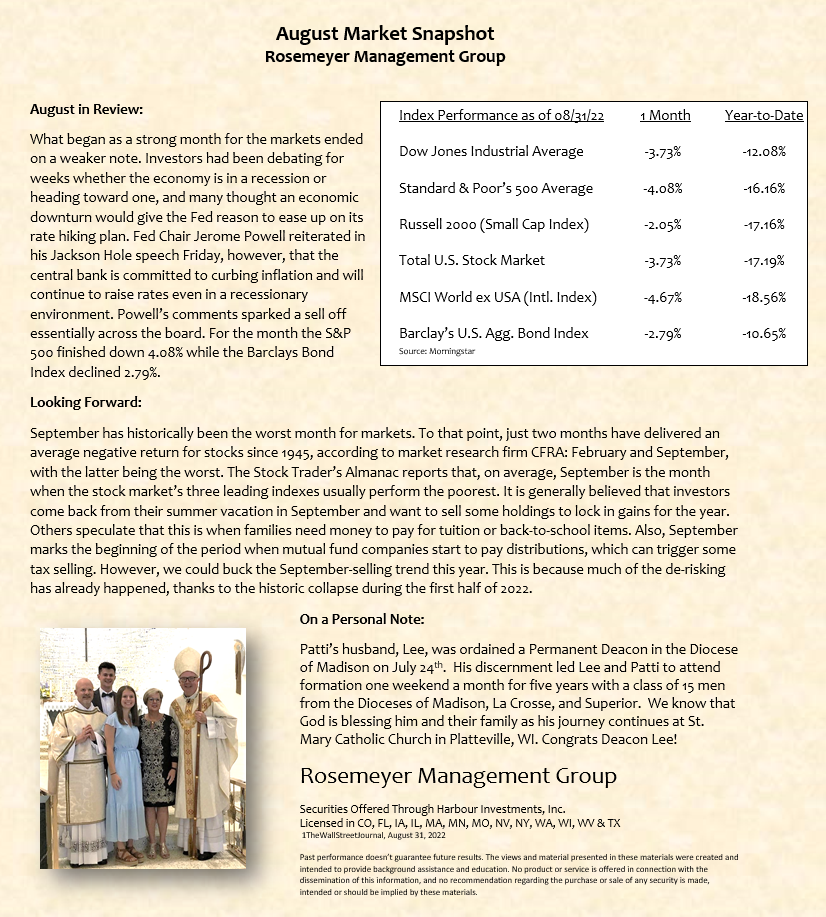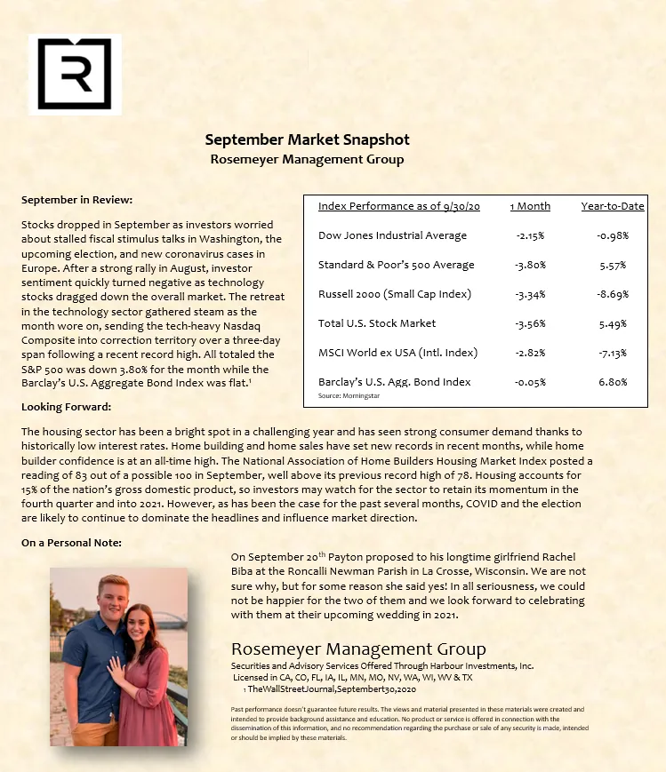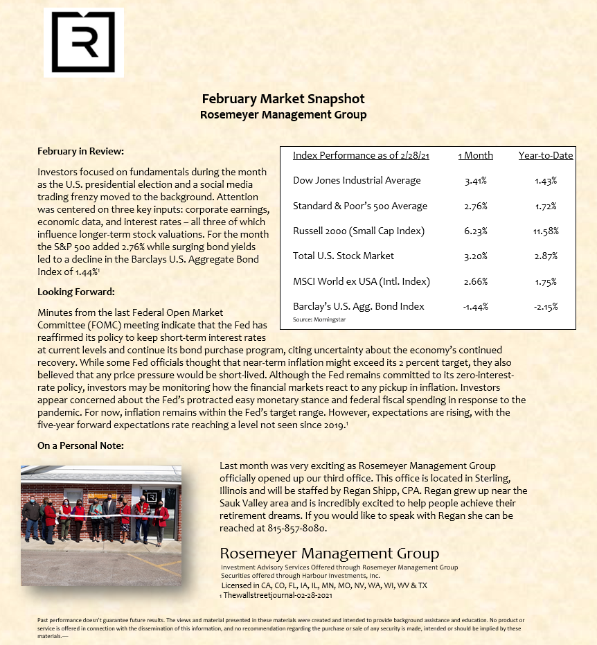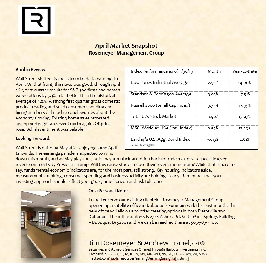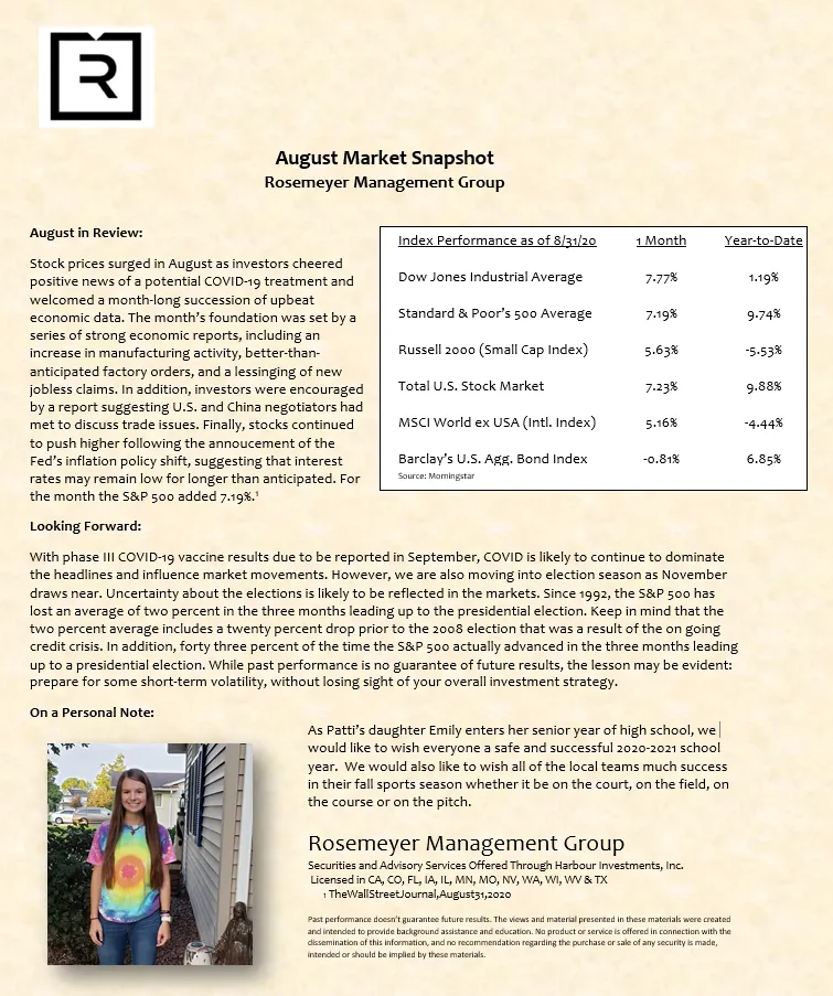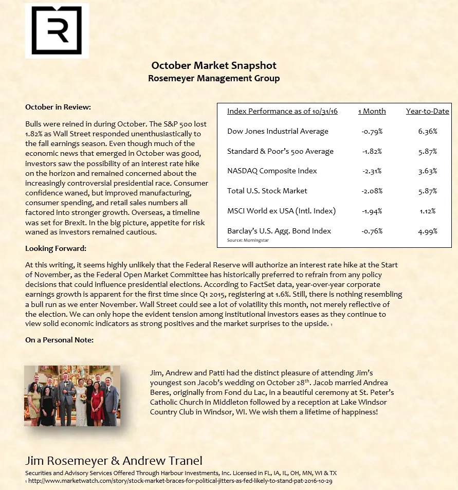 We prepare a monthly market commentary for all of our clients.